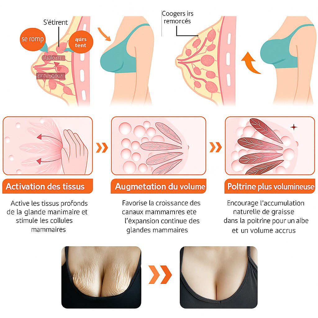 Faites l’expérience d’une augmentation et d’un lifting mammaire, soulagez l’inconfort mammaire et prévenez/traitez les affections mammaires.
